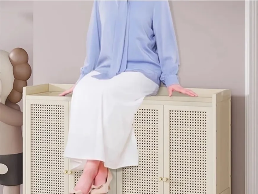 For storing items like shoes or linens, a cabinet with breathable and moisture-resistant properties is essential. The Wooden Rattan Door Breathable Bamboo Shoe Cabinet, with its air-ventilated rattan doors, provides excellent airflow to prevent moisture buildup and keep your belongings in top condition.